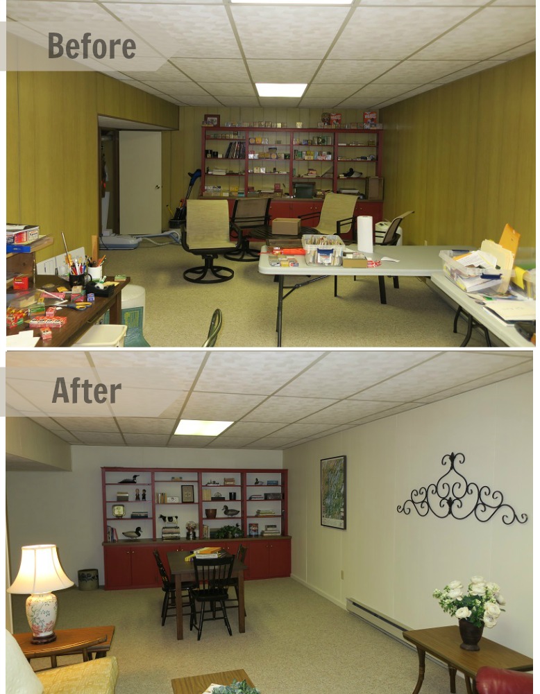 Removing clutter and adding fresh paint brightened up this basement.