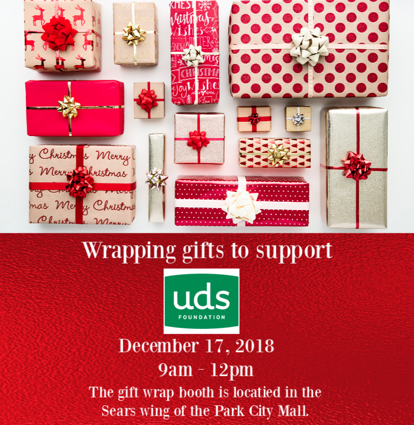 We have some excellent gift wrappers on our team! While I'm not one of the excellent wrappers, I am a great helper! Our team will be wrapping on Monday, December 17th from 9am - 12pm. The booth is located in the Sears wing. Please make an effort to support UDS by visiting us this year – we'd really love to see you!