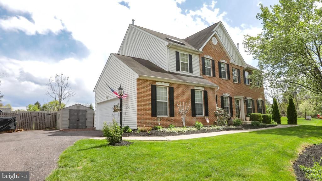 Welcome to this beautifully maintained 2-story Colonial located in a highly desirable Gilbertsville development, offering the perfect blend of space, style, and functionality. From the moment you step inside, you’re greeted by a dramatic 2-story foyer featuring a turned staircase, setting an elegant tone for the rest of the home. Hardwood flooring flows throughout the entire first floor, complemented by 9-foot ceilings that create an open, airy feel. The main level features a formal living room with a cozy wood stove, a formal dining room ideal for entertaining, and a private first-floor office—perfect for working from home. The updated kitchen is a standout, boasting granite countertops, white cabinetry, tile backsplash, center island, convenient desk area, and a bright breakfast area for casual dining. A 5-foot bump-out adds valuable extra space, enhancing both functionality and flow. The kitchen opens to the rear patio, where you’ll find a gazebo and a heated Eagle pool—your own backyard retreat. There is also a playhouse to store all your pool equipment as well as a shed. The dramatic 2-story family room showcases a floor-to-ceiling stone fireplace with gas logs and skylights that fill the space with natural light, creating a stunning focal point for everyday living. Just off the family room is a convenient first-floor laundry room that adds everyday ease. Several closets on the first floor make sure there is plenty of storage. Upstairs, all four bedrooms feature laminate flooring. The spacious primary suite offers a tray ceiling, walk-in closet, and a luxurious private bath with a soaking tub, tile shower stall, double sinks, and a vaulted ceiling with skylight. The additional bedrooms are generously sized, each with ceiling fans, and share a well-appointed hall bath. There is also a walk-up attic with excellent potential to be finished into additional living space. The finished basement expands your living area with a den, a second family room complete with a wet bar, a half bath, and ample storage space. Completing the home is a 2-car garage and quality 2x6 construction for enhanced energy efficiency. This home combines thoughtful upgrades and solid craftsmanship throughout—all in a fantastic location close to everything Gilbertsville has to offer.